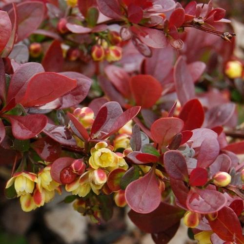 Цветет барбарис 'Кармен' в начале мая, радуя глаз своим обилием мелких желтых цветочков, собранных в кистевые соцветия. Их приятный, но не навязчивый аромат наполняет сад нежным весенним благоуханием. После цветения на место цветков образуются продолговатые ярко-красные плоды, которые не только украшают кустарник, но и являются съедобными.