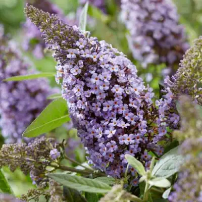 Листья буддлеи “Баттерфляй Кенди Лила Свитхарт” имеют насыщенный темно-зеленый цвет с глянцевым блеском, достигая длины до 10 см. Они придают растению особую выразительность и делают его центром внимания в любой посадке. Период цветения данного сорта начинается в середине лета и продолжается до самых холодов, радуя глаз садоводов.
