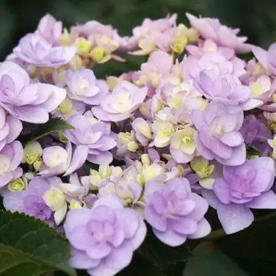 Гортензия крупнолистная Ю энд ми форевер описание которой часто подчеркивает динамику развития соцветия, обладает крупными щитковидными шапками диаметром до 18 см. В начале цветения бутоны имеют желтовато-зеленоватый оттенок, но по мере раскрытия их цвет начинает зависеть от кислотности почвы. В слабокислом грунте лепестки приобретают чистый голубой цвет, а в щелочном — изысканный лилово-розовый окрас. Уникальная структура соцветия заключается в том, что сначала раскрываются стерильные цветки по краям, а затем середина постепенно заполняется изящными махровыми цветами диаметром до 5 см. Обильное и длительное цветение продолжается с июля до самых холодов, наполняя сад легким ароматом.