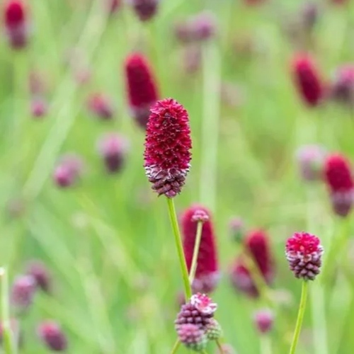 Цветение начинается в июле и продолжается до конца августа. Соцветия — вытянутые цилиндрические головки длиной до 7 см, располагаются на длинных цветоносах. Окрас — густой, винно-красный, глубоко насыщённый. Цветки мельчайшие, без аромата, но эффектные благодаря своей массе и подвижности. При малейшем ветре растения оживают, придавая композициям лёгкость и ритм.